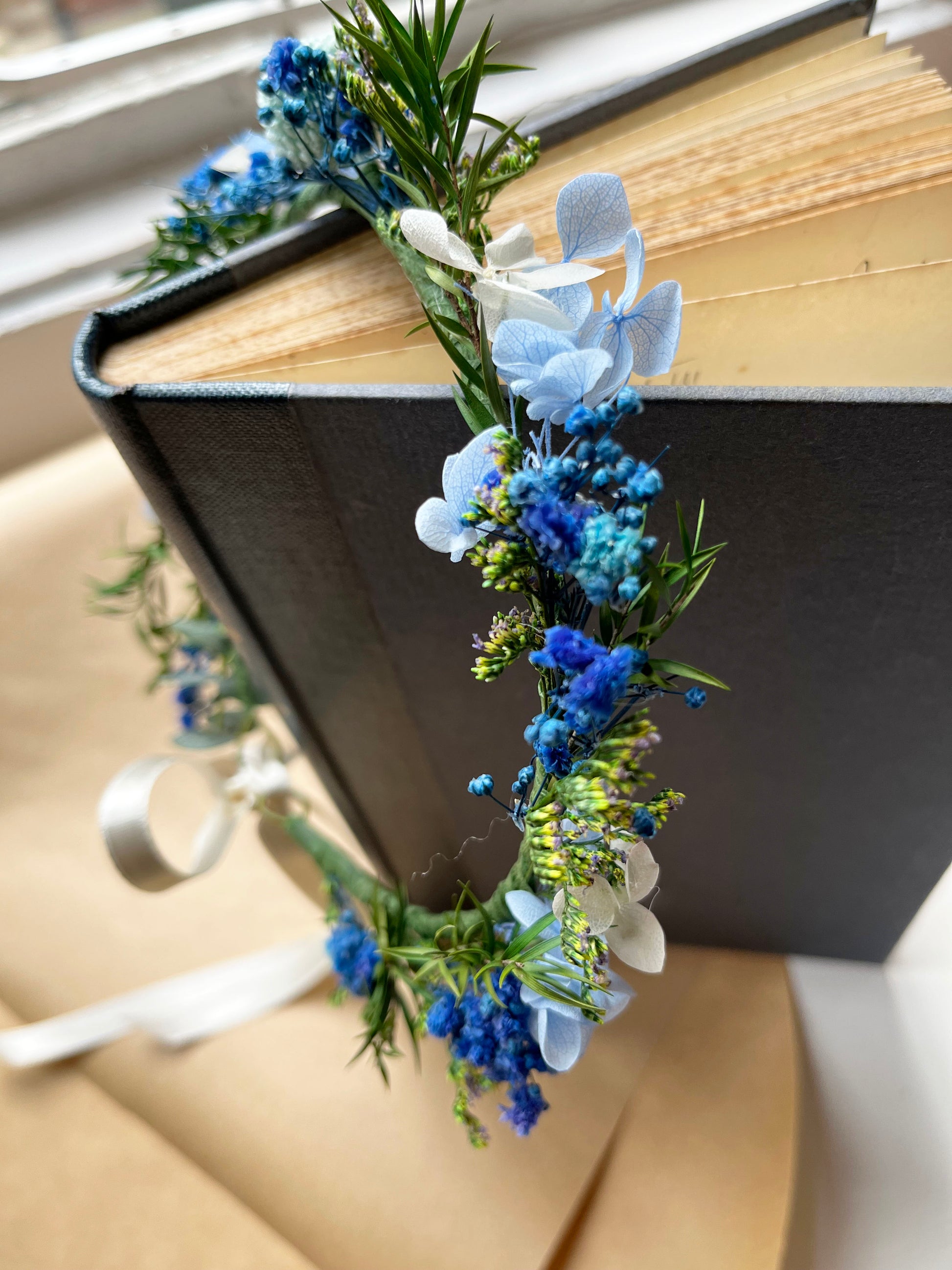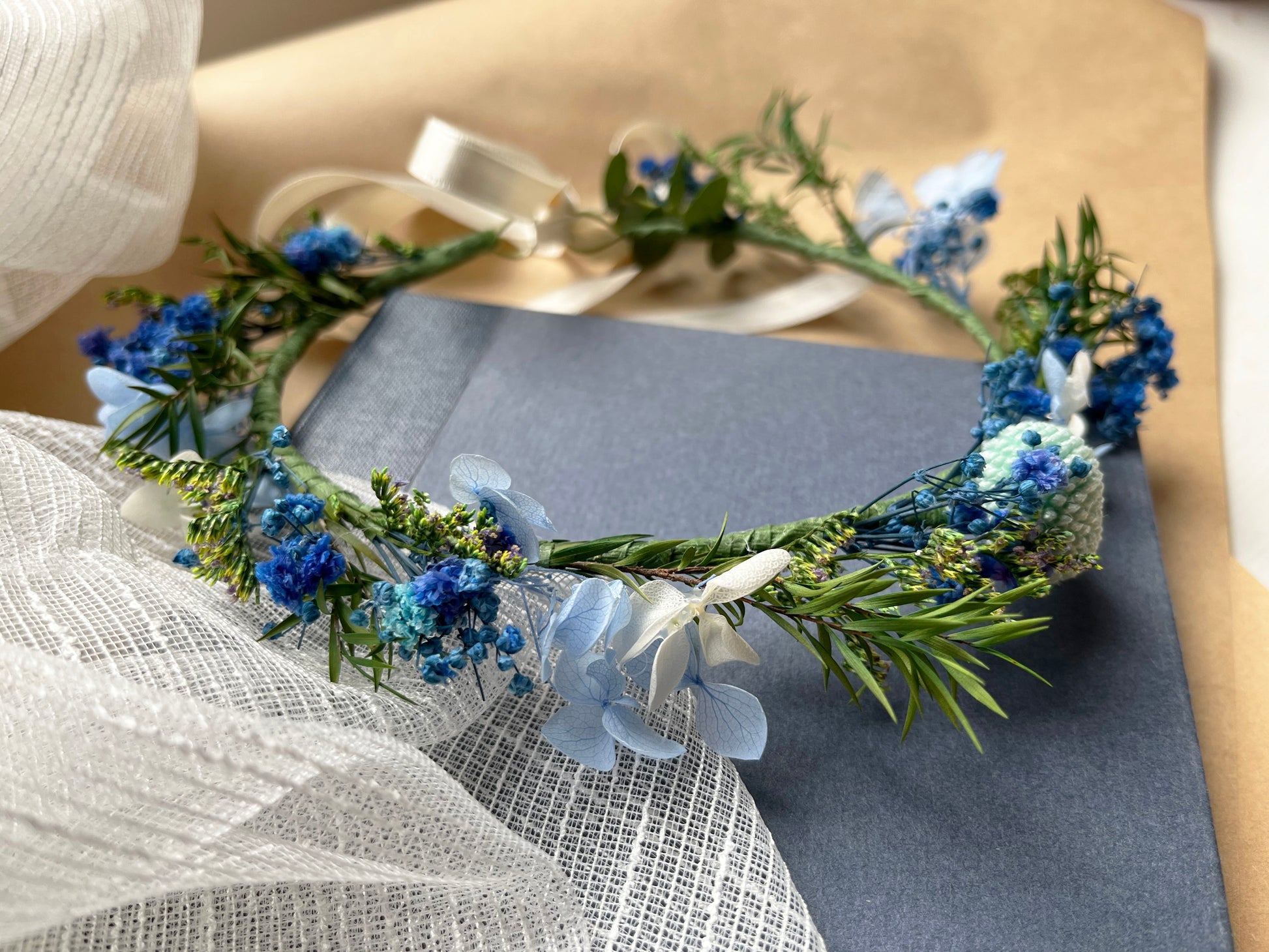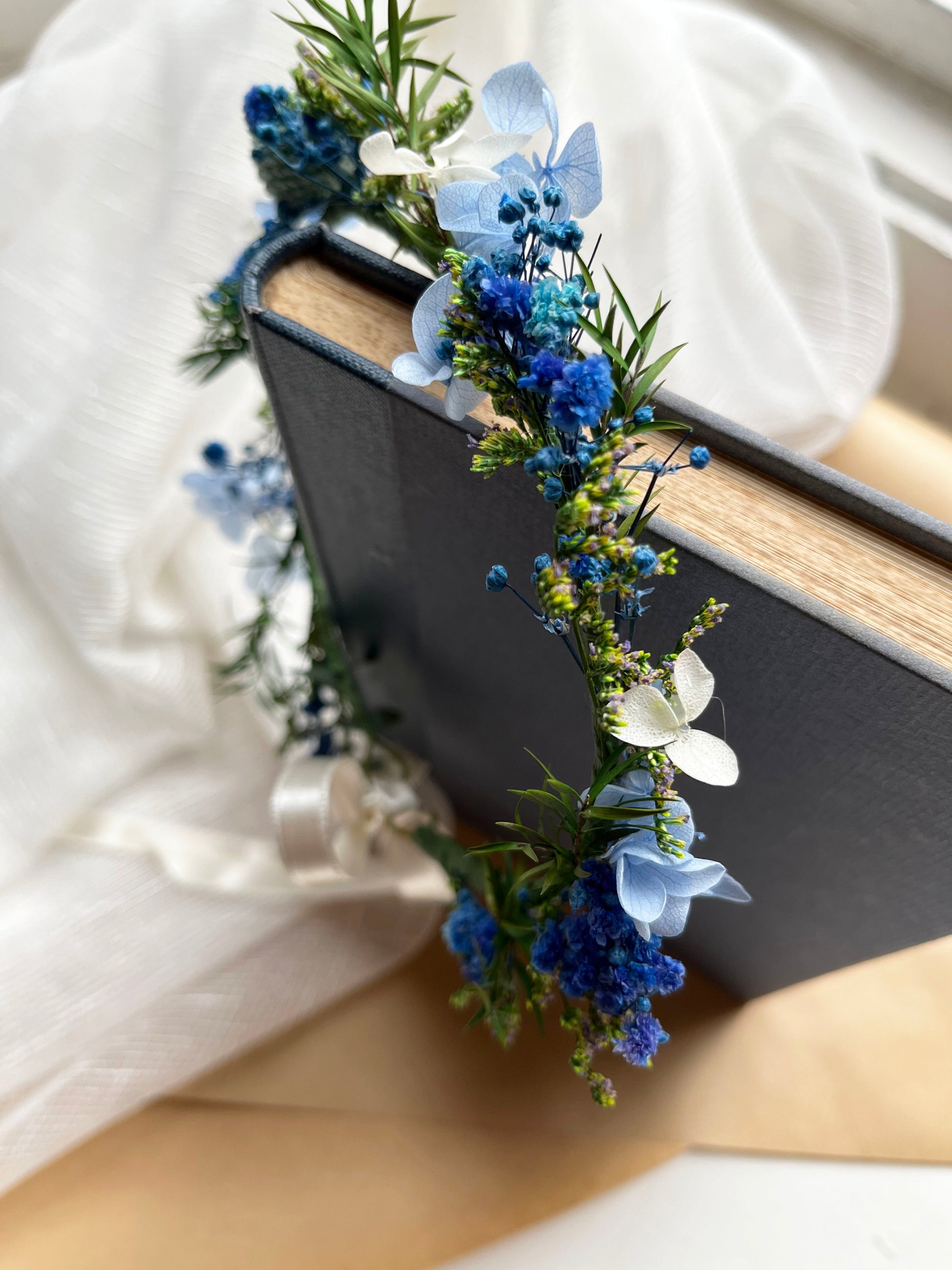 Blue Dried Flower Crown // For Bride Bridesmaid Flowergirl // Wedding Birthday Babyshower Gift