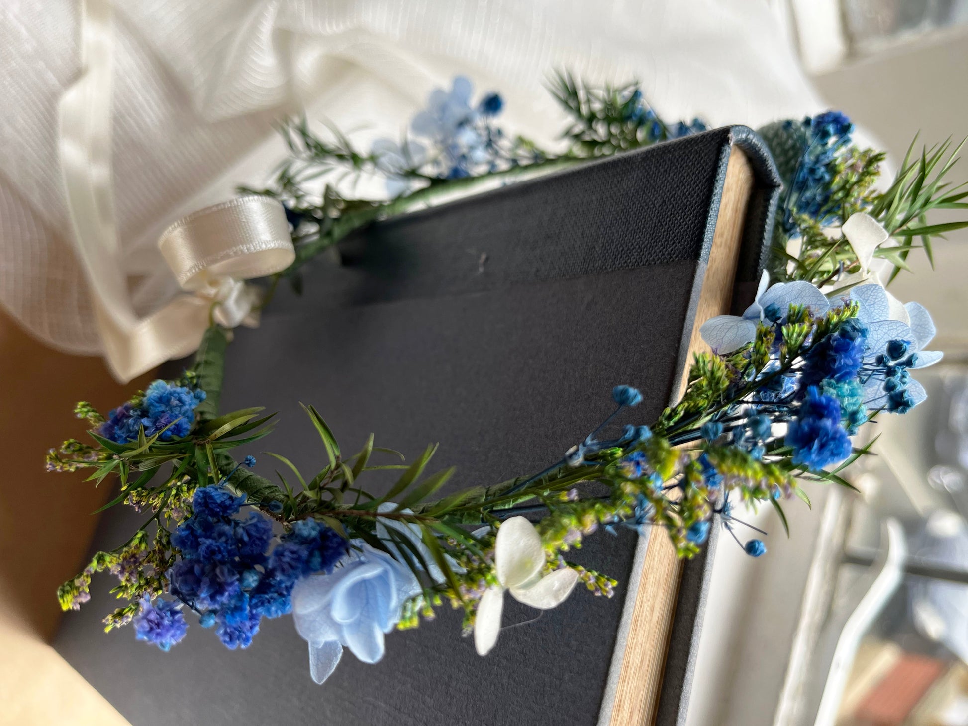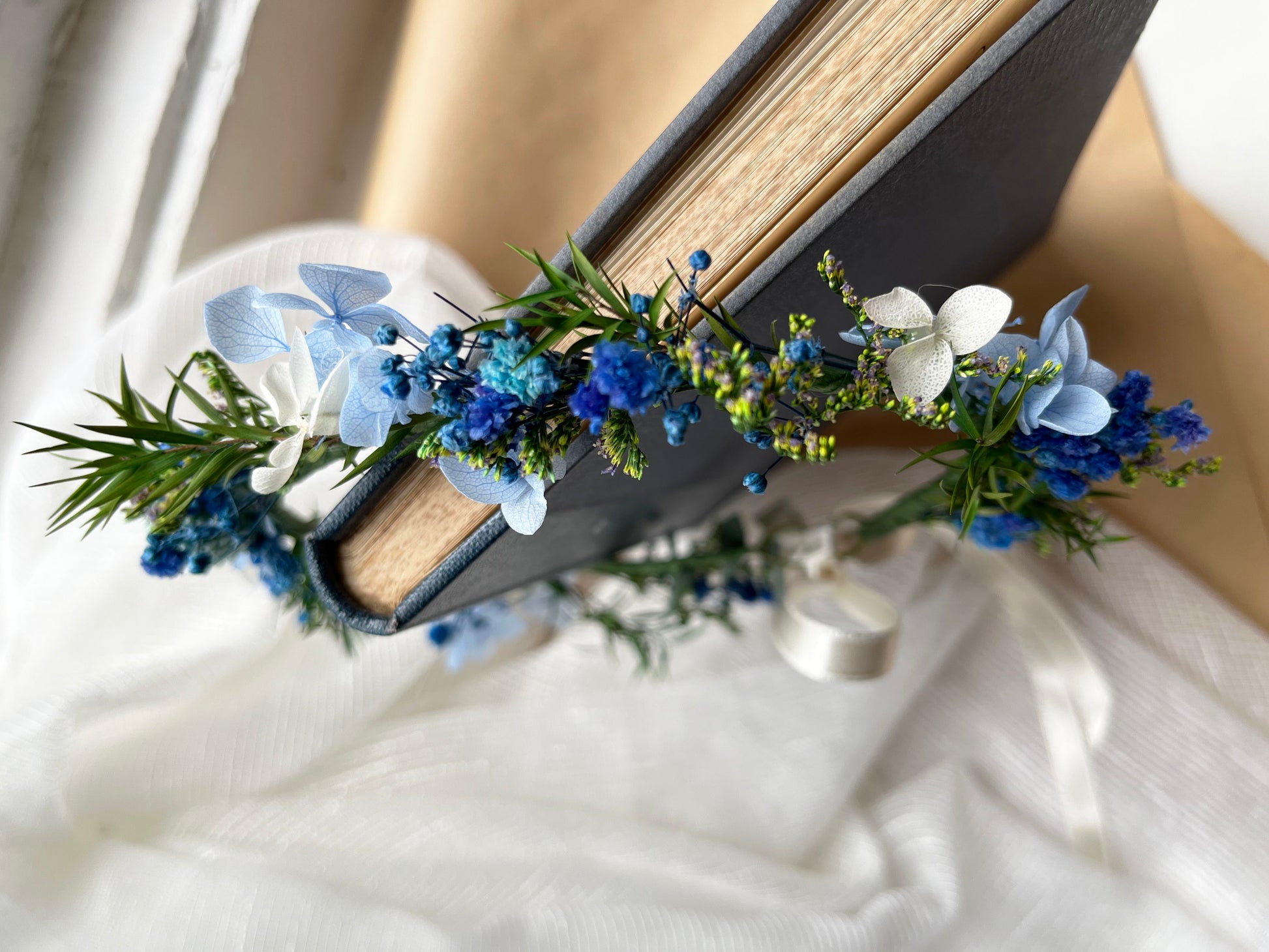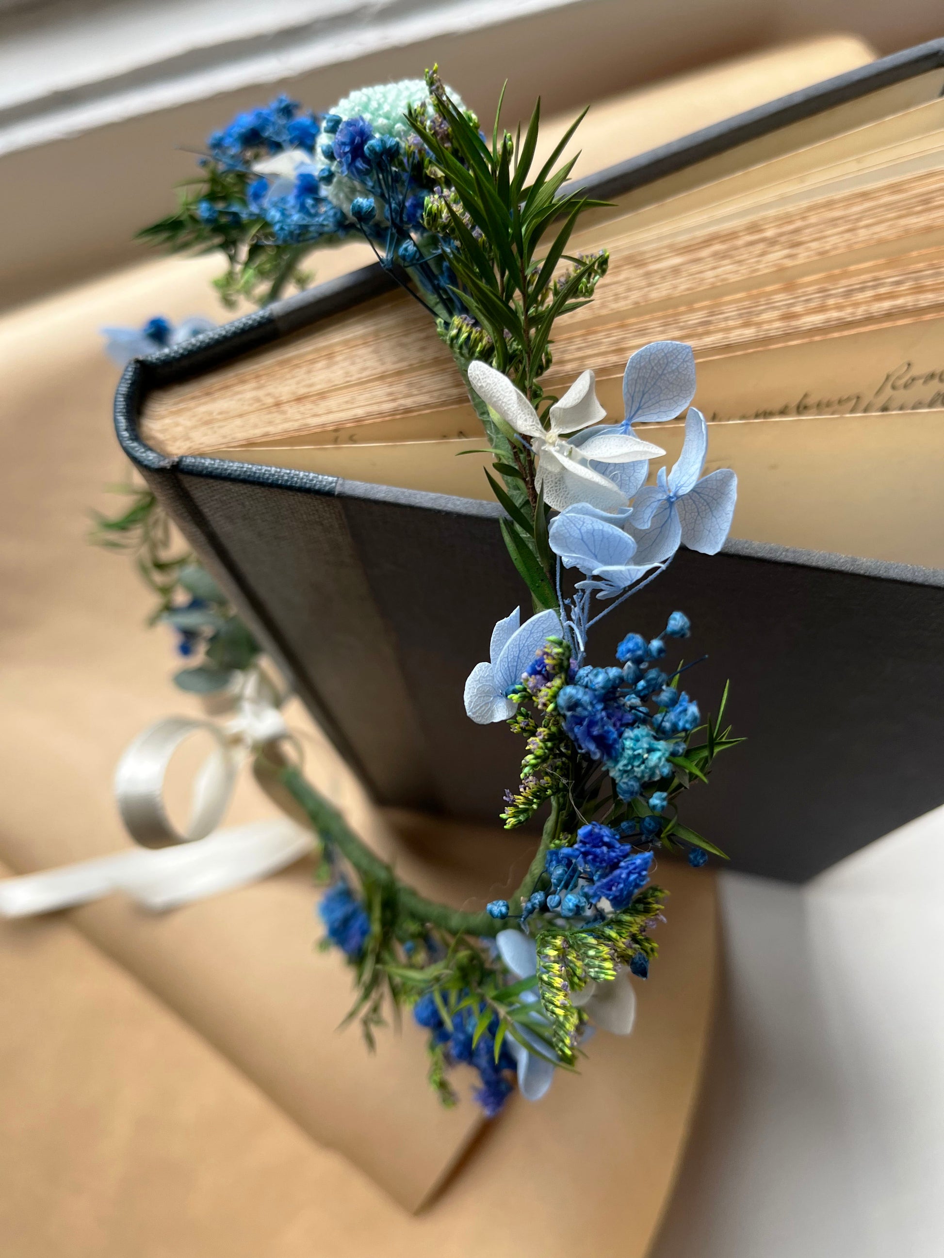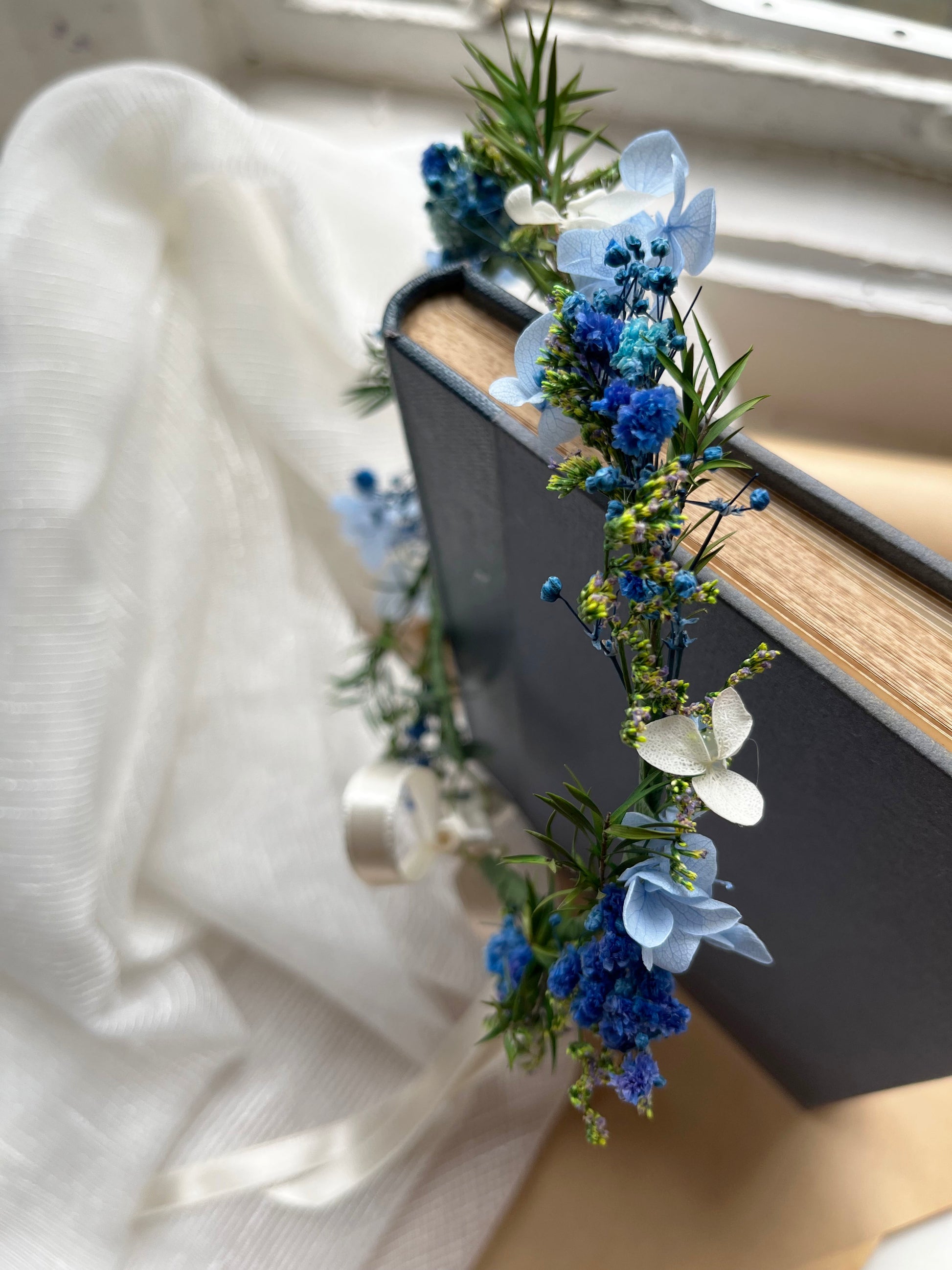 Blue Dried Flower Crown // For Bride Bridesmaid Flowergirl // Wedding Birthday Babyshower Gift