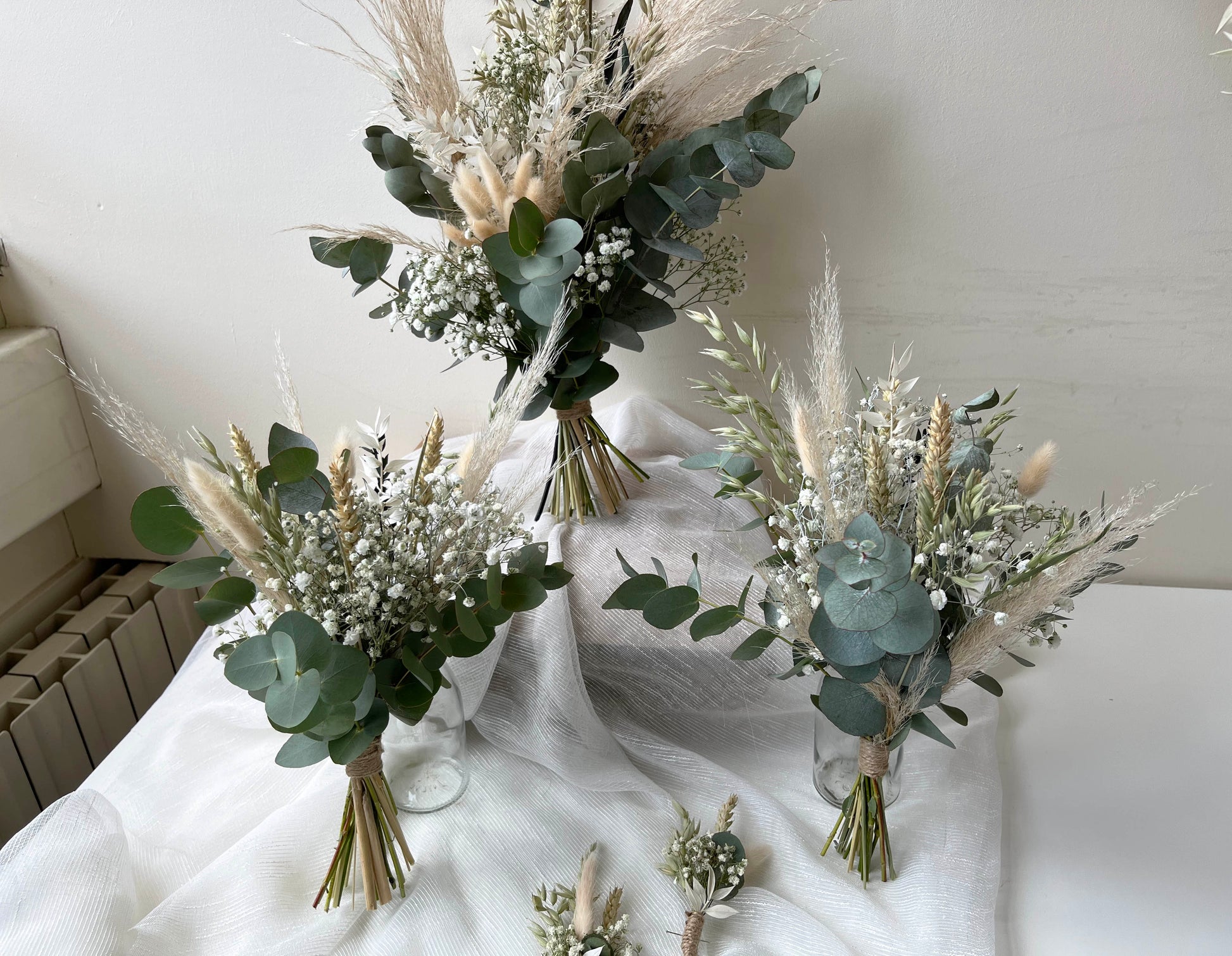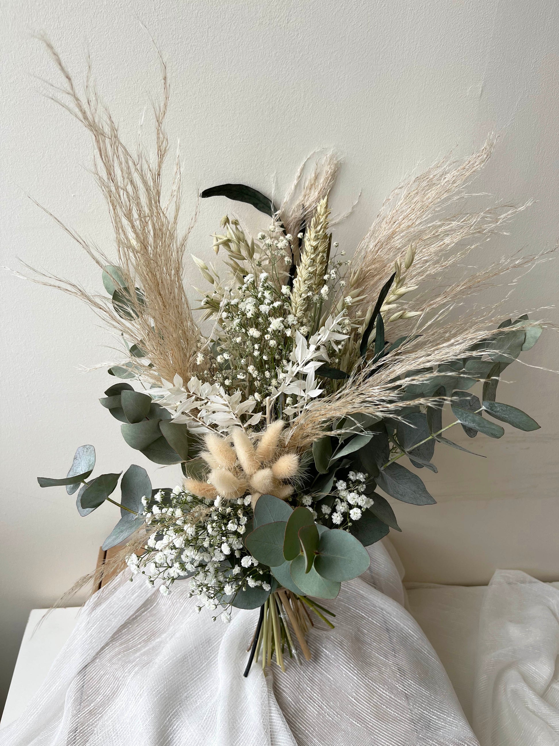 Natural Chic Boho Dried Flowers Bridal Bouquet Set