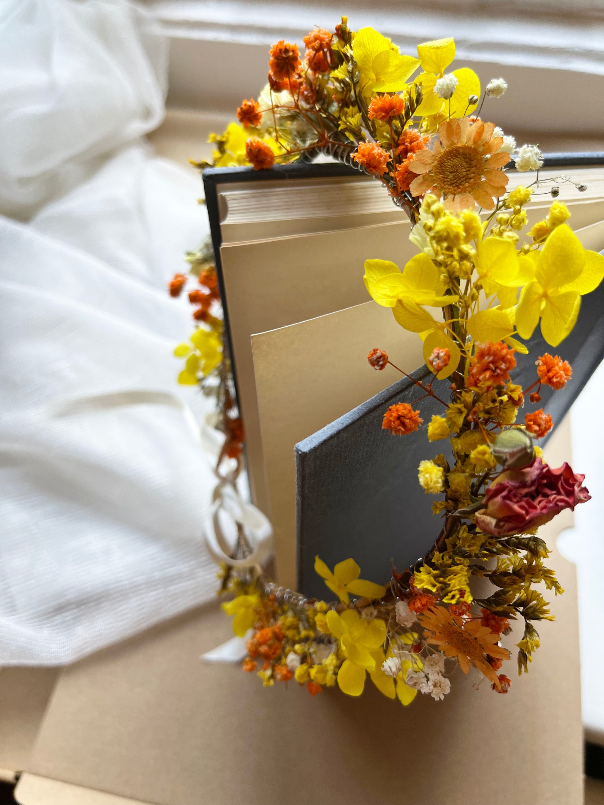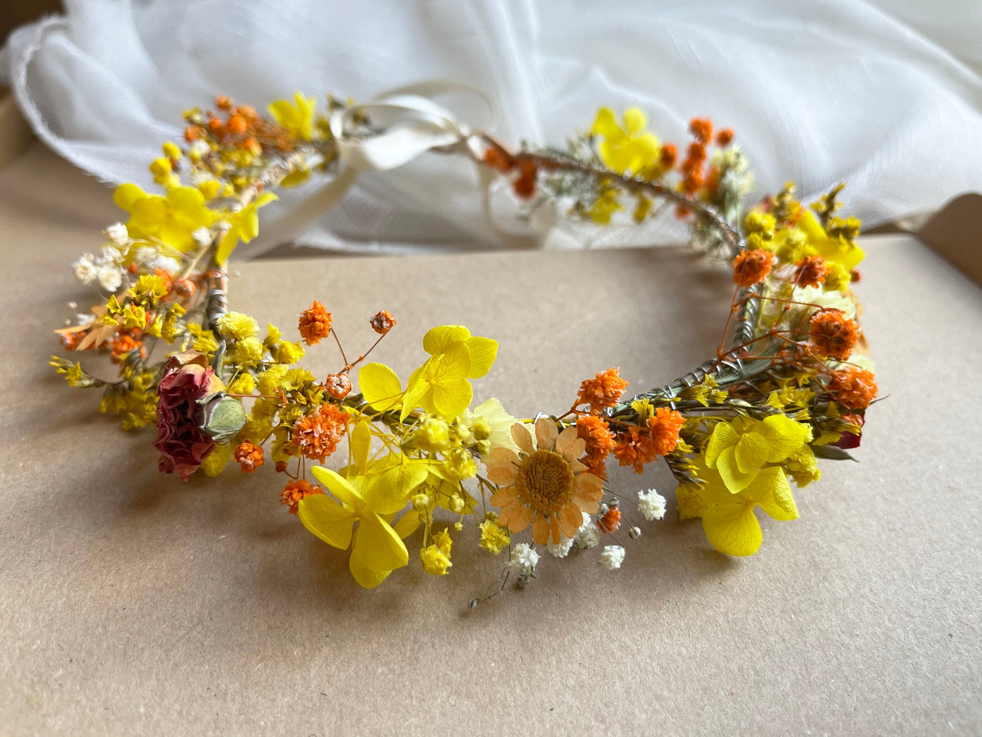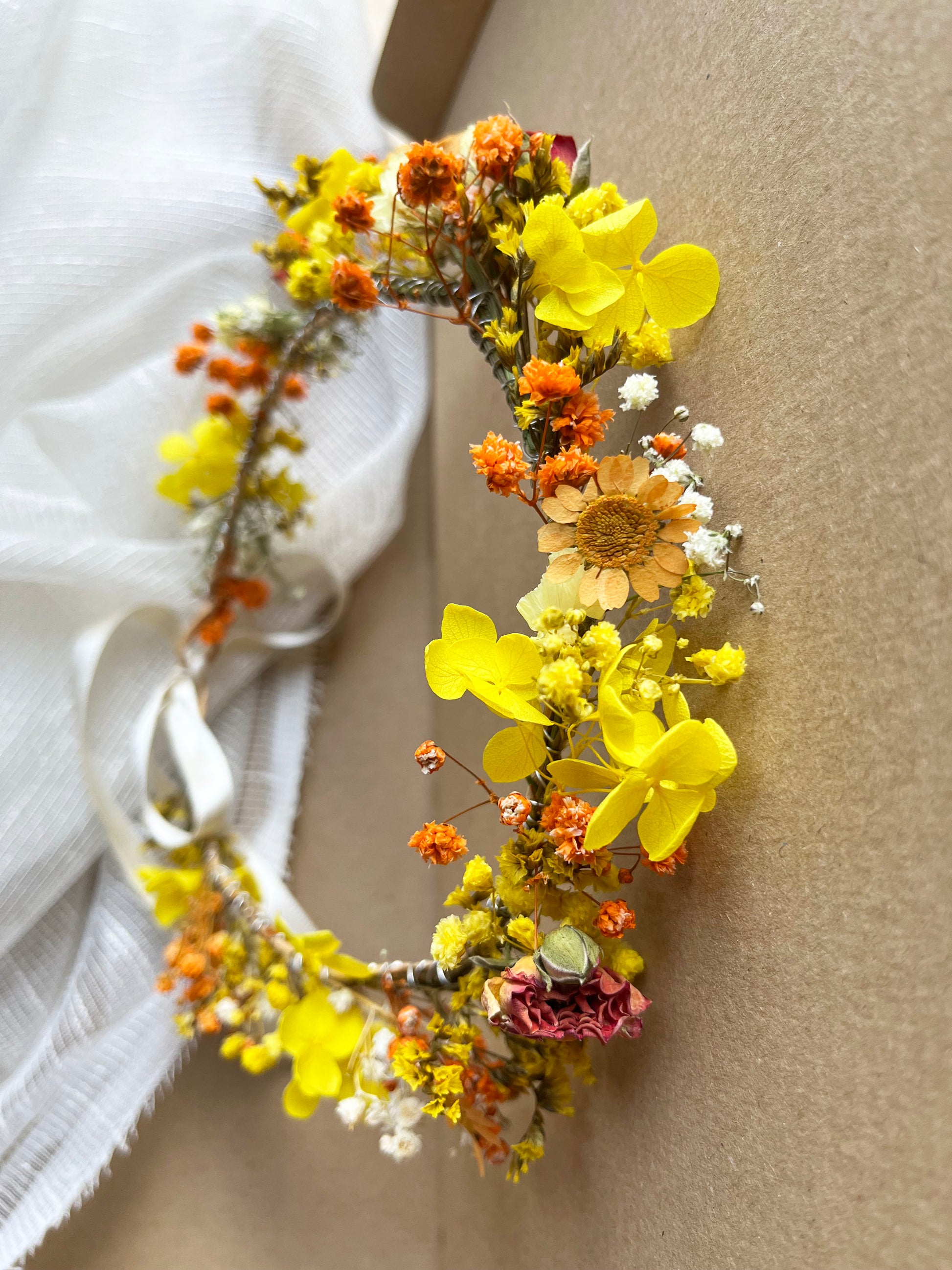 Yellow Orange Dried Flower Crown // For Bride Bridesmaid Flowergirl // Wedding Birthday Babyshower Gift