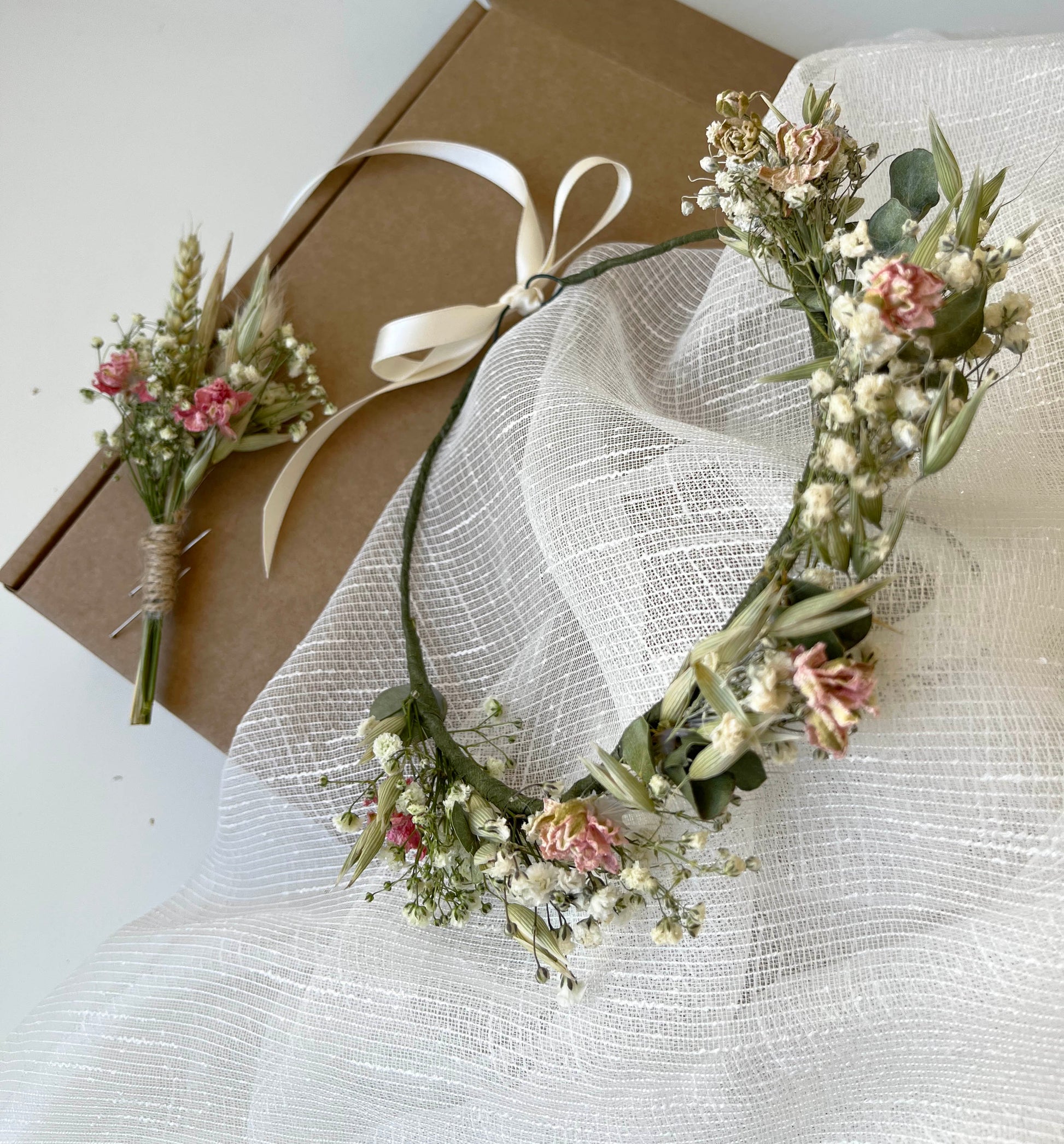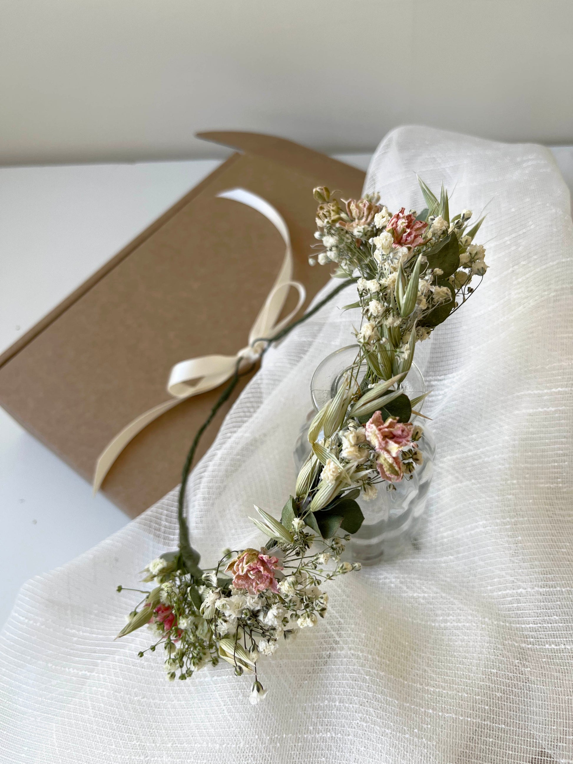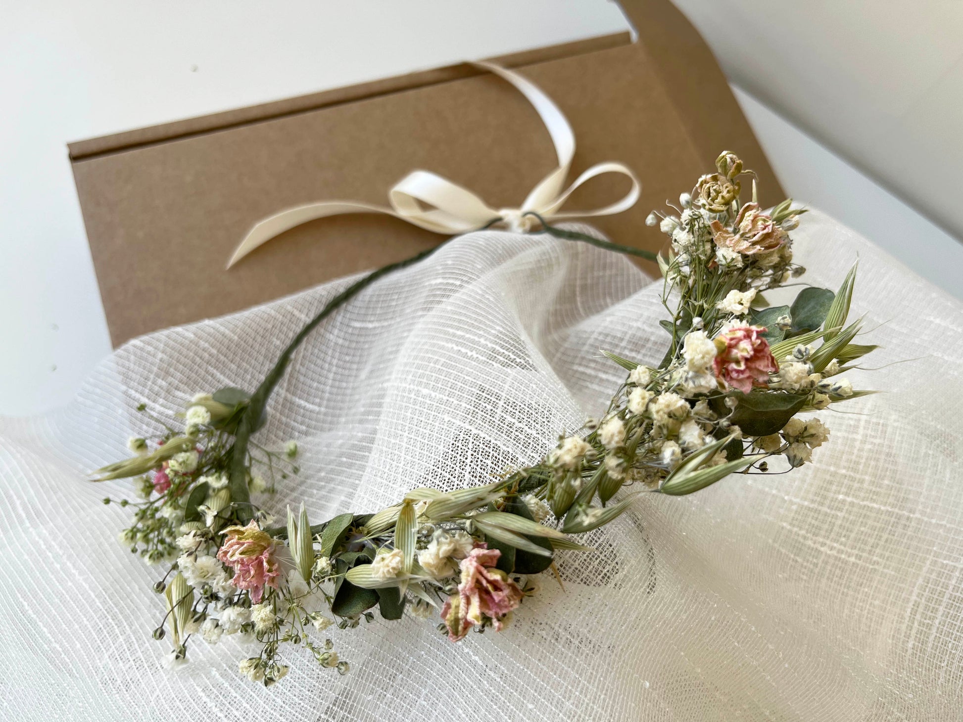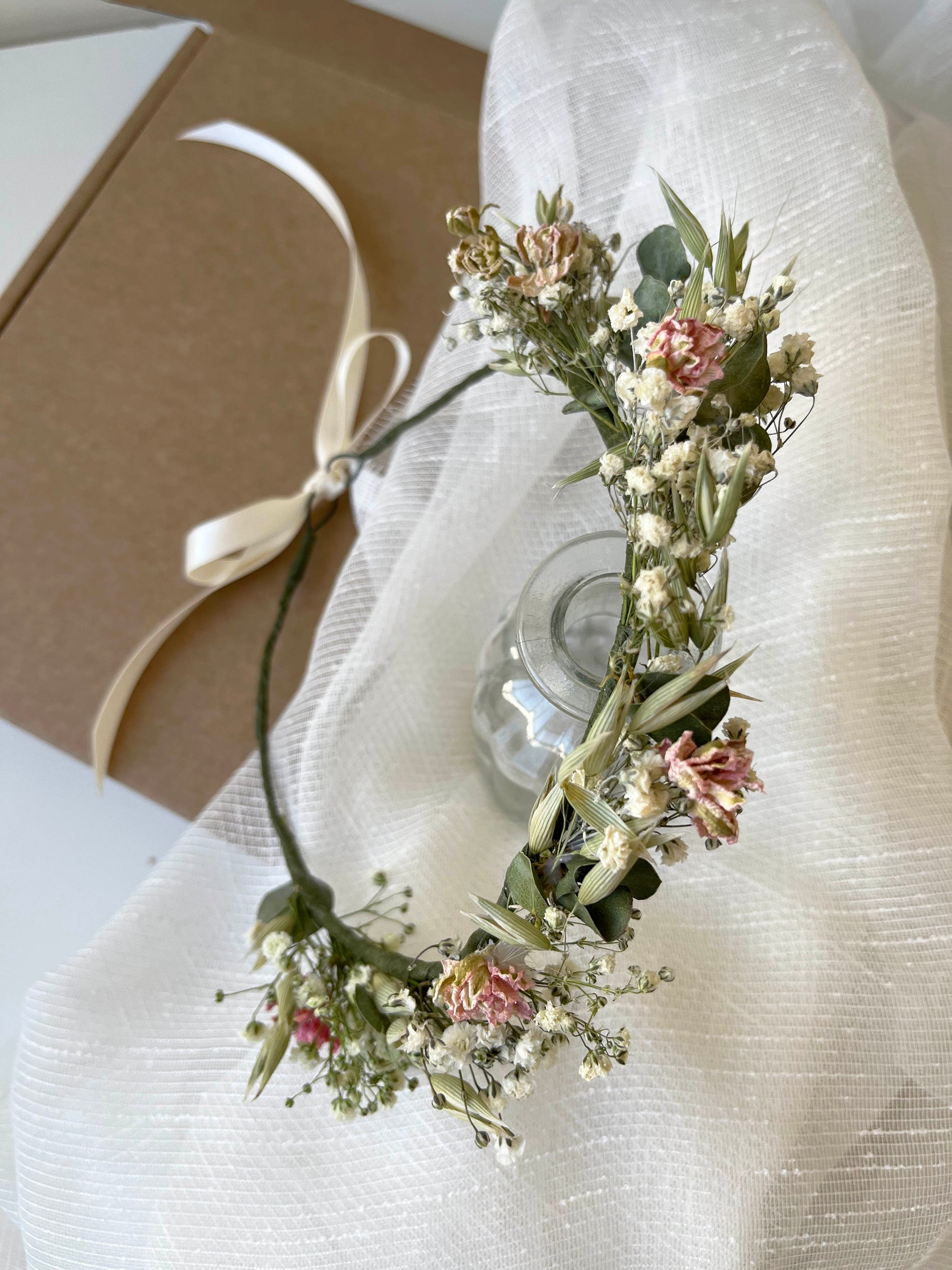 Dried Baby's Breath Dusty Pink Eucalyptus Flower Crown