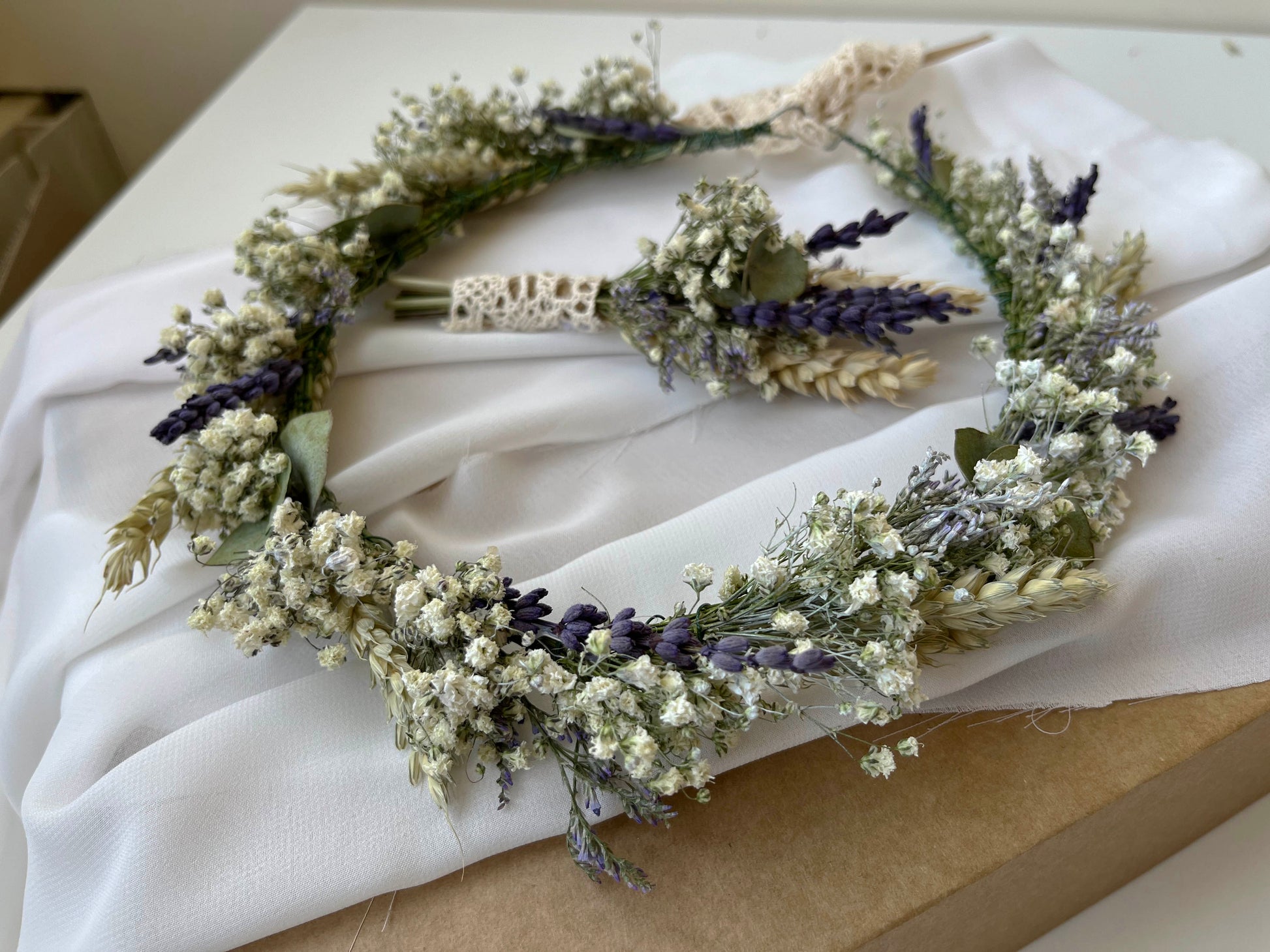 Dried Baby's Breath Lavender Rustic Flower Crown