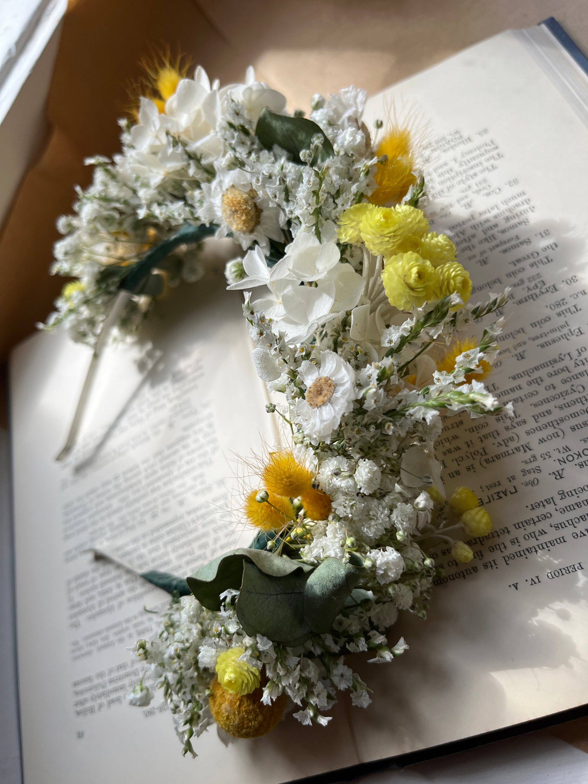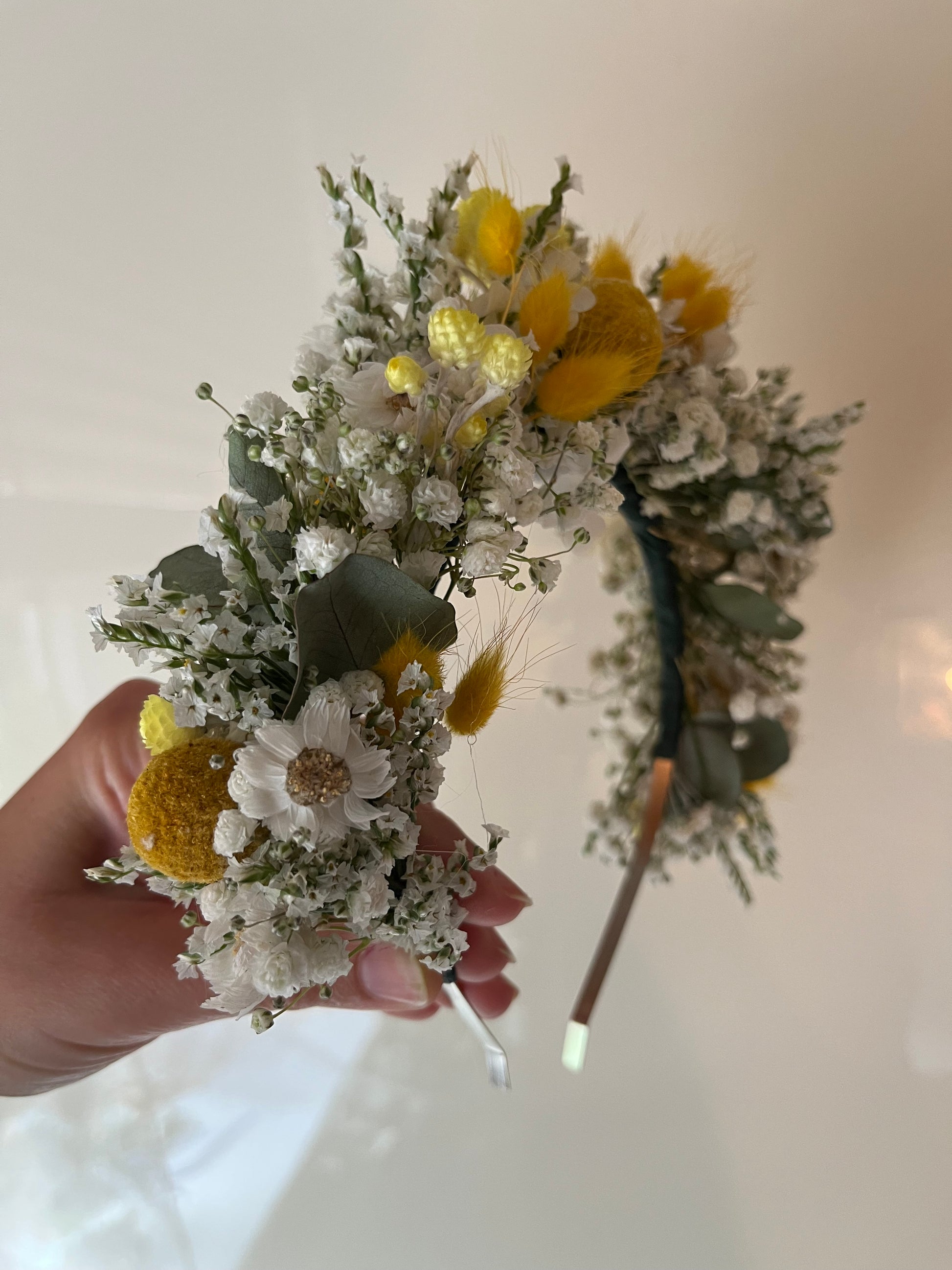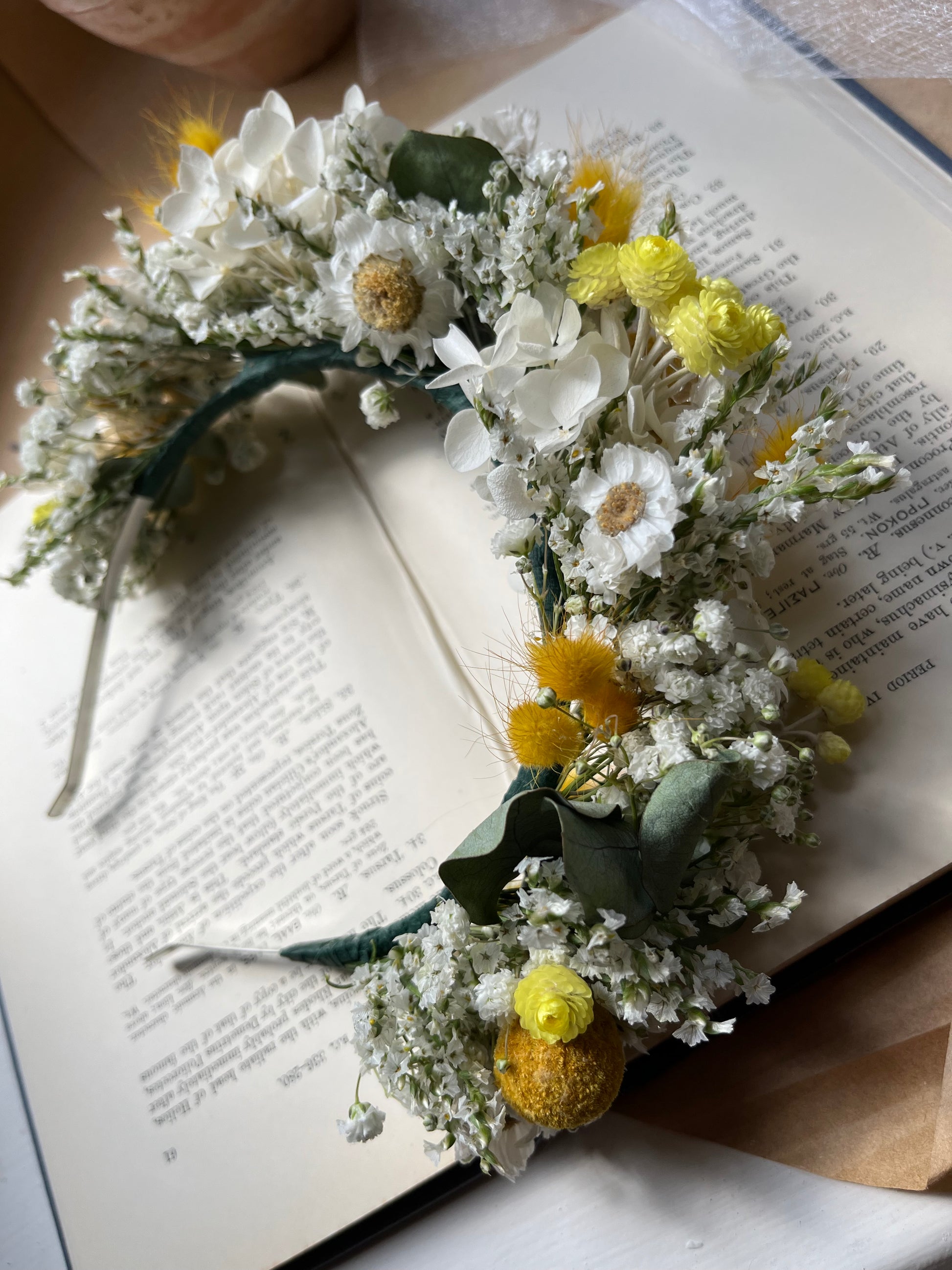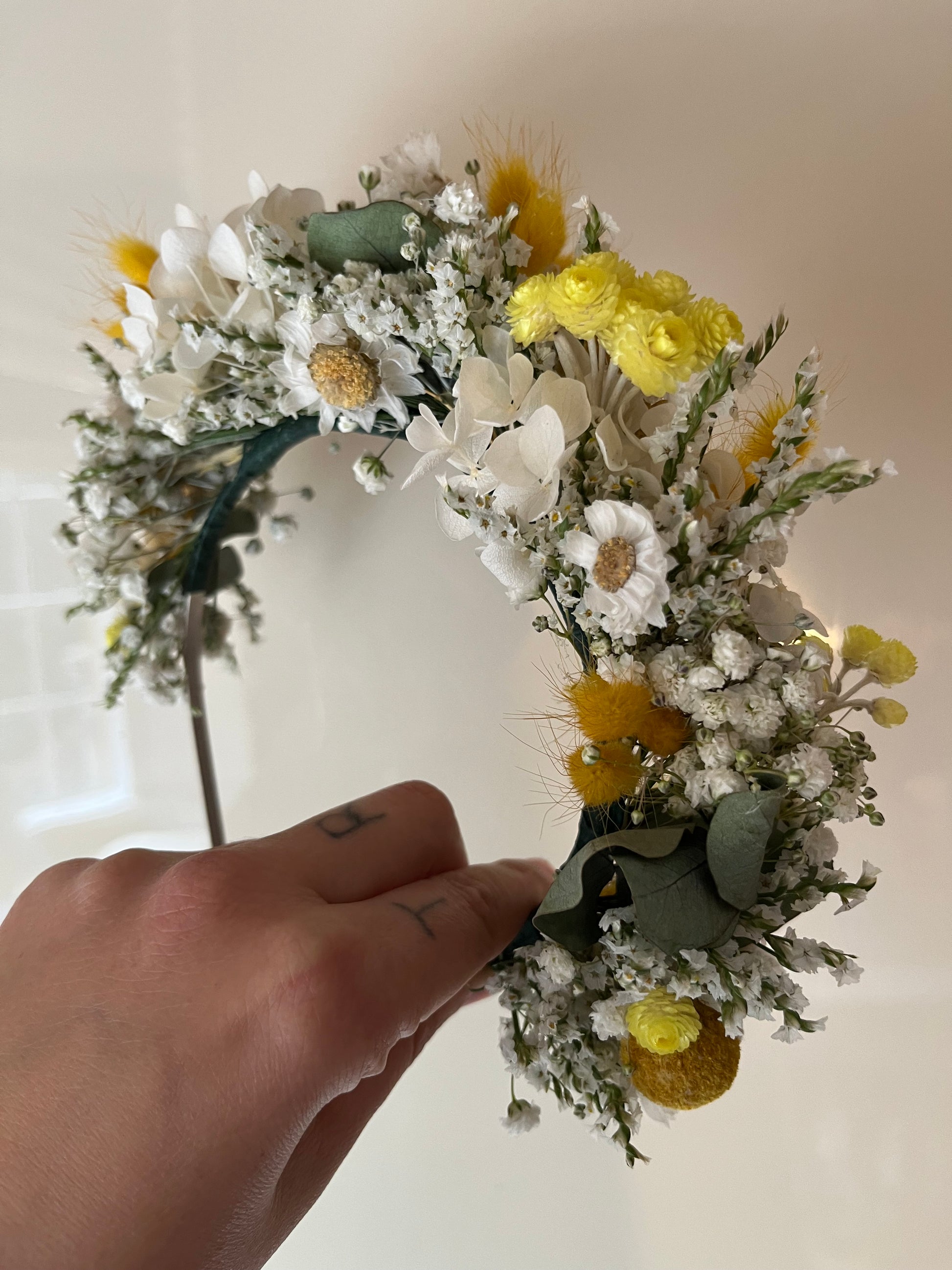 Yellow White Baby`s Breath Daisy Dried Flower Crown